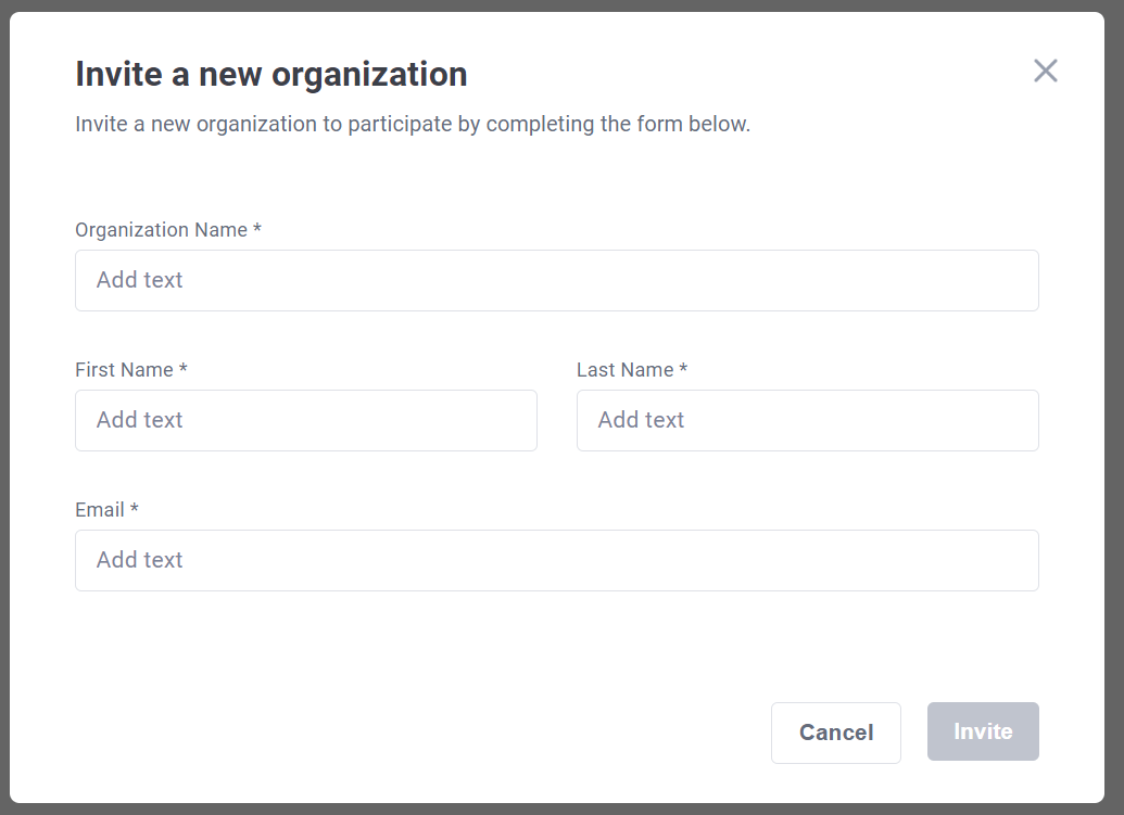 - Click Invite. The contact will be sent an email notifying them that your organization has invited them to participate in the Coffective dashboard.