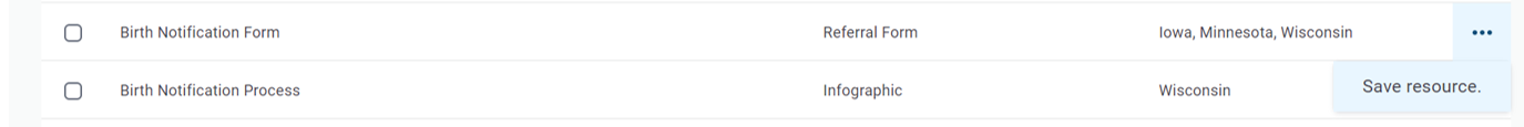 Save One Resource, from Listing Page