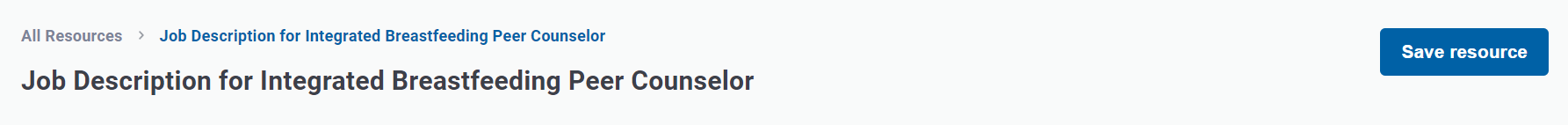 - From the details page of a resource, click Save resource in the upper right corner